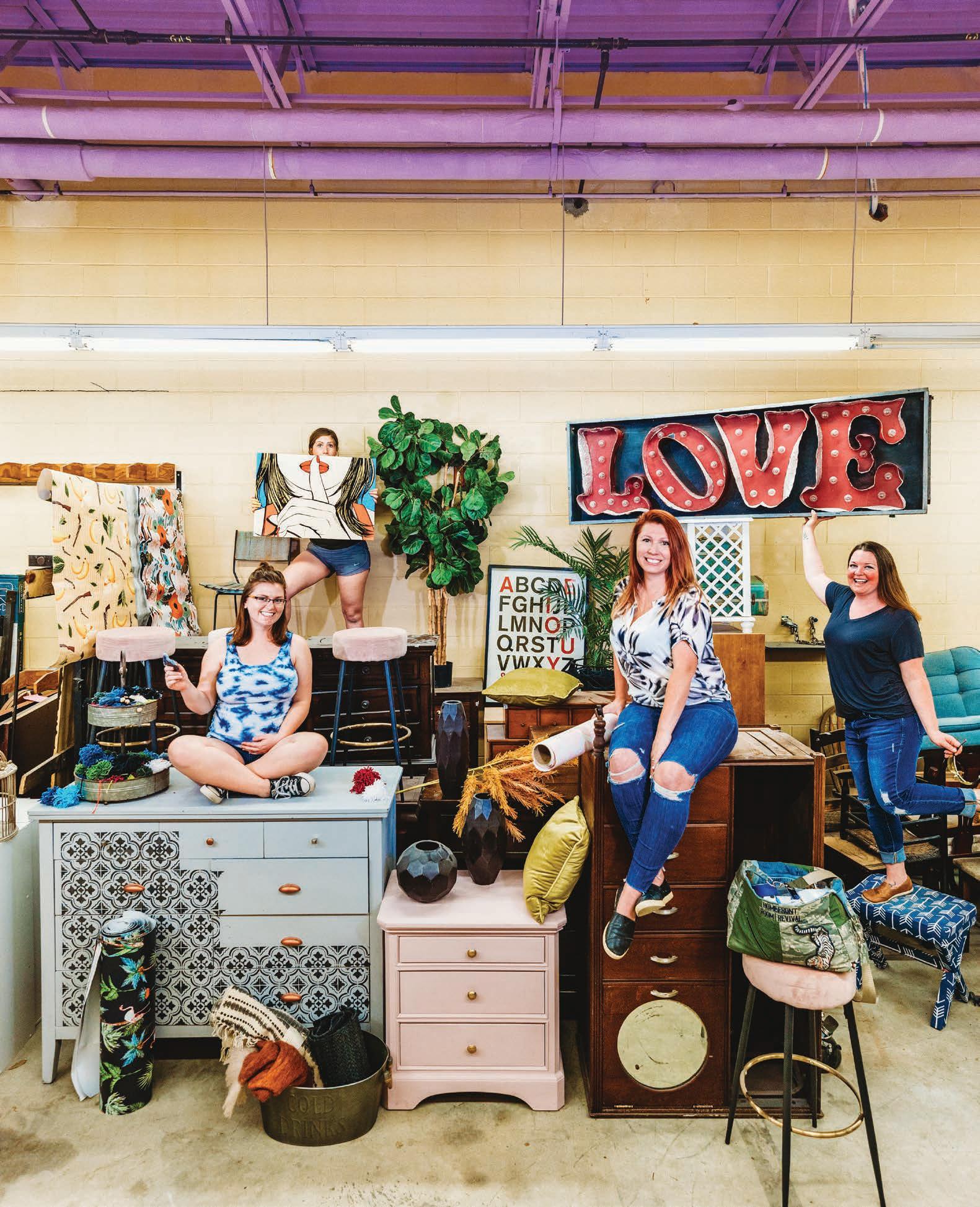 The team of Homefront Room Revival organizes their warehouse of hidden treasures aboard Seymour Johnson Air Force Base in Goldsboro, North Carolina. Cover feature images by Jen Winebarger of Whimsy Day Photography