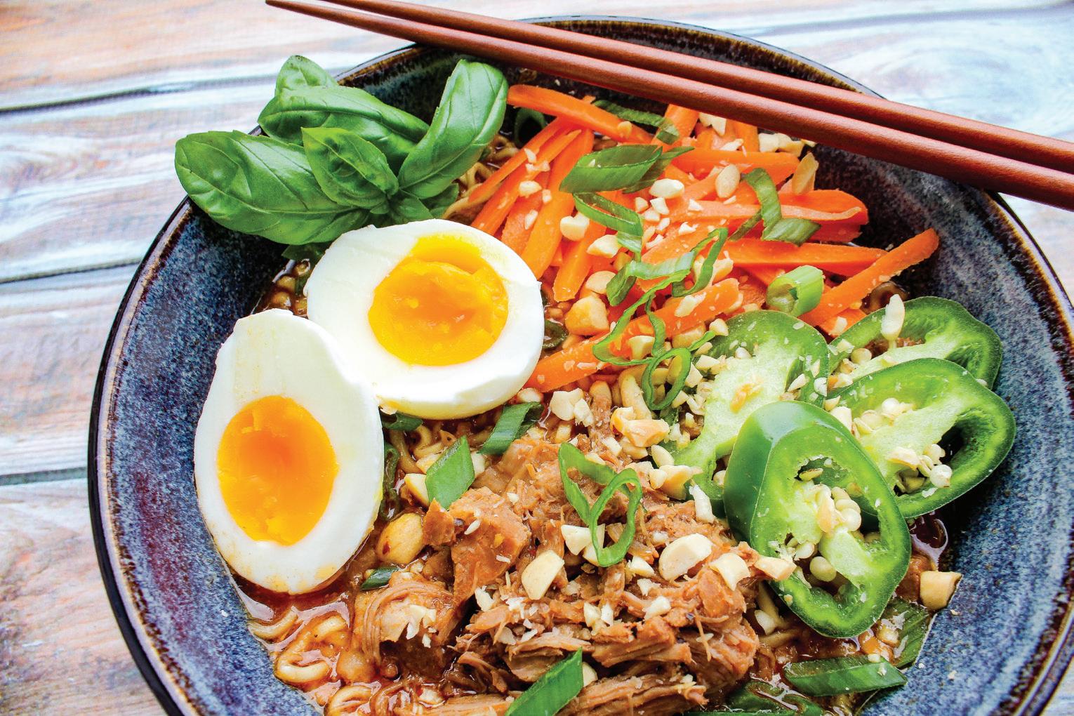 Ramen is a staple meal in Japan. While there are too many versions to count, this Crock-Pot style option takes some flavor influences from Thai cuisine to put a unique spin on a traditional dish.