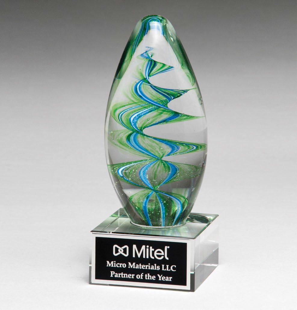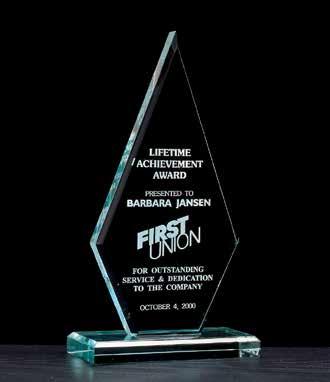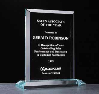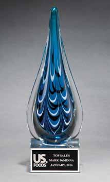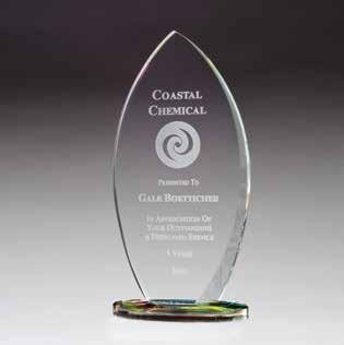New Glass Awards 2 AL L PRICE S SUBJ EC T TO CHANG E, CH EC K WW W AIRF LY T E C O M FO R CURREN T P RICIN G L A S E R ENG R AVA B L E A L UMINU M P L AT E 2300 4.375 x 11 5 $81 00 L AS E R E N G R AVA BL E A L UMINU M P L AT E 2302 2 625 x 6 5 $60 00 ALL CLEAR GL ASS AWARDS ARE SUITABLE FOR L ASER ENGRAVING OR SAND ETCHING. ART GL ASS AWARDS ARE HAND MADE, AIR BUBBLES AND COLOR VARIATIONS ARE COMMON. SUPPLIED WITH PADDED, SATIN-LINED GIFT BOXES. SEE PAGE 73. G3137 3.375 x 8 75 $45 00 G3138 3 625 x 9 625 $48 00 G3139 4 125 x 10 625 $51 00 0 3 7 5 I NC H T HIC K CL E A R G L AS S Art Glass Twist Blue and Teal with Gold Metallic Accent 2308 2.625 x 8.75 $69.00 L ASE R ENG R AVA BL E A L UM I NU M P L AT E Flamed Shaped Art Glass Award Teal and Green with Gold Metallic Accent Egg Shaped Art Glass Award Blue and Green Helix