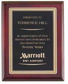 P5077 7 x 9 $60.00 P5078 8 x 10.5 $72.00 P5079 9 x 12 $88.50 High Gloss Rosewood Stained Plaque with Gold Florentine Border Plate High Gloss Black Stained Plaque with Gold Florentine Plate LASER ENGRAVABLE ALUMINUM PLATE P5088 7 x 9 $57.00 P5089 8 x 10.5 $69.00 P5090 9 x 12 $85.50 High Gloss Black Stained Plaque with Silver Florentine Plate LASER ENGRAVABLE ALUMINUM PLATE P4561 7 x 9 $63.00 P4562 8 x