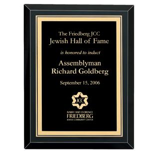 Black High Gloss Plaque, Gold Sunburst Frame Casting with Black LaserFX Plate