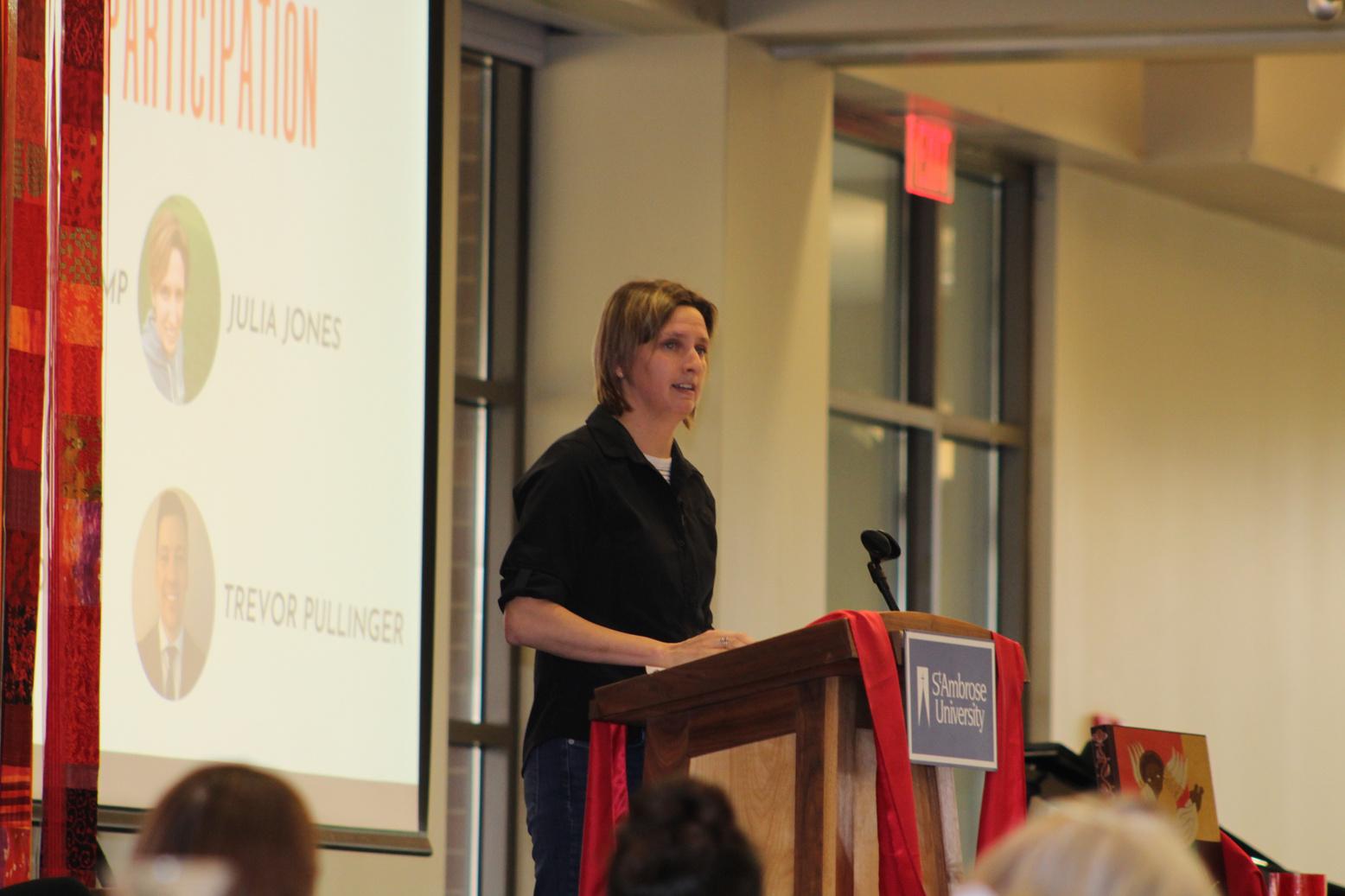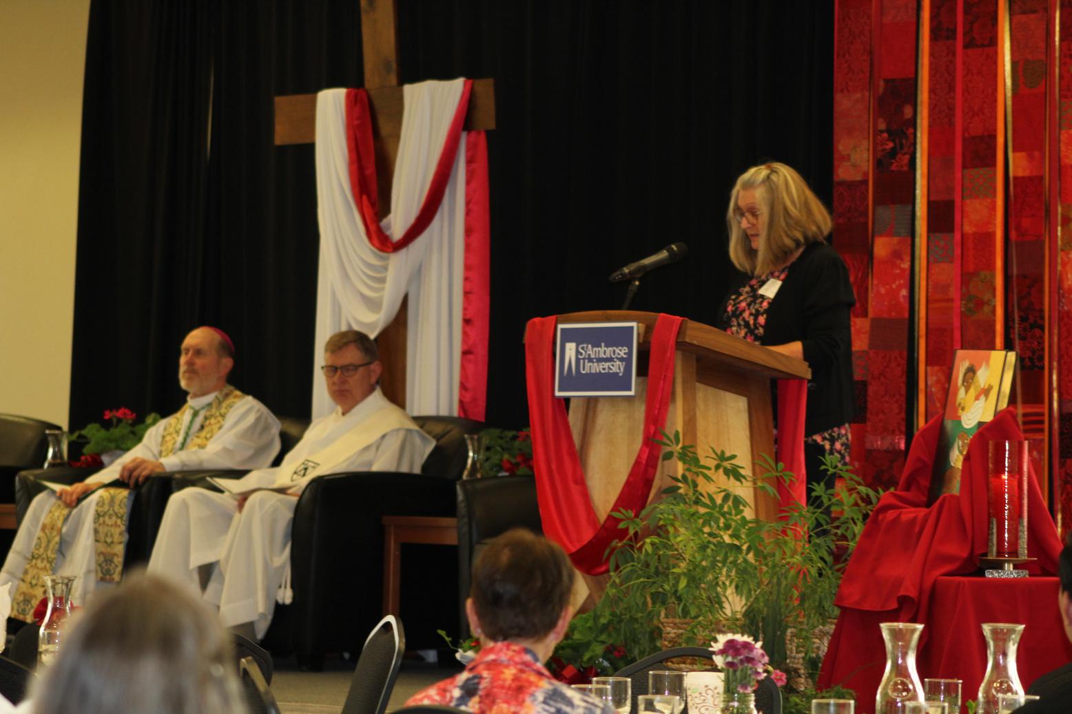 Amy Novak, President of St. Ambrose University, offered a warm welcome to campus, noting how fitting it was that we were at St. Ambrose: "when you delve into the writings of St. Ambrose, I think you realize and recognize his call to each of us to live into vocations that welcome and acknowledge people of all backgrounds.”