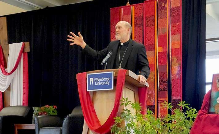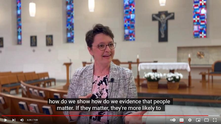 St. Ambrose University President Amy Novak spoke in a video message about the university’s commitment to foster a sense of welcoming while also addressing the hurt that students deal with around issues such as divorce, LGBTQ+ and polarization in the Church. “We have to show people they matter before they can feel like they belong.”