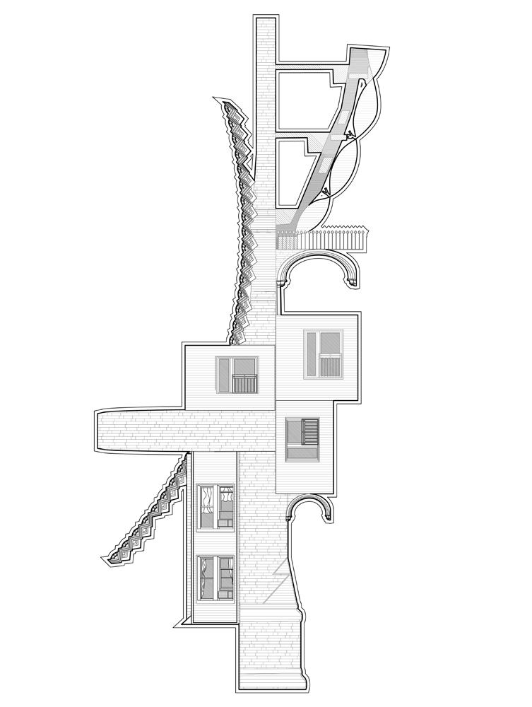 tween spaces, as well as the grid which is the foundation for this one composition. The plans, elevations, and sections were made by utilizing AutoCAD. The plans were the first part and they were realized as a comprehensive analysis of the grid as well as the documentation which states specific dimensions for each bay and column, from which everything else took form.