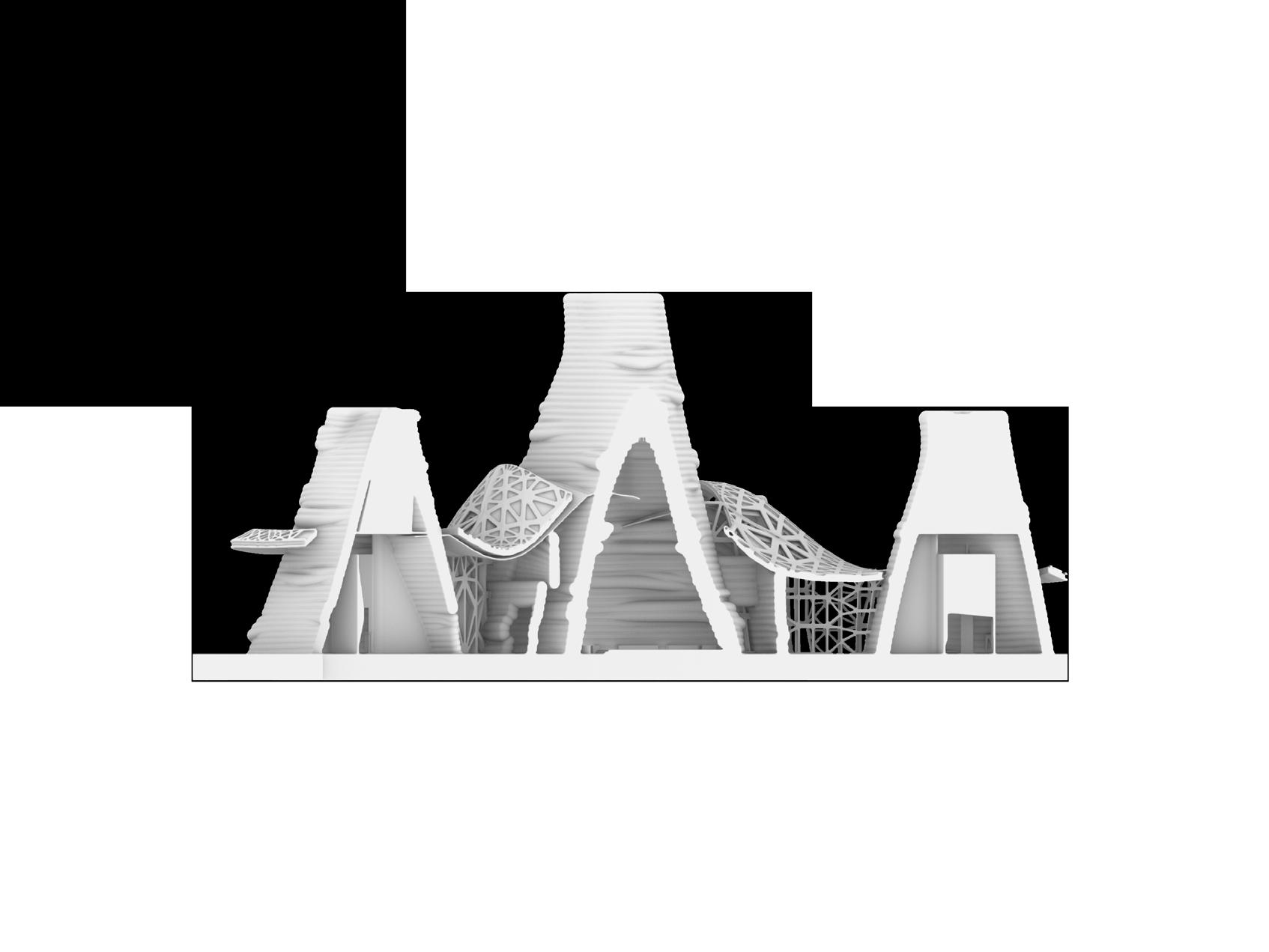 actions with the other occupants. I feel it is the culmination of my learning throughout the semester, from our team being able to operate fundamental boolean functions in Rhino to exploring AI fully as inspiration and being able to use parametric design as a tool with the result being intentional rather than something that just happened to occur.