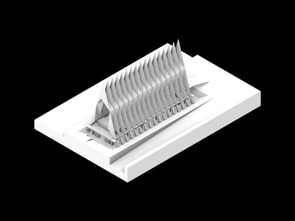 on which the organ stands. The USAF Cadet Chapel is a non-denominational building supposed to be used for any given purpose by every member of the corps of cadets in the Air Force. This precedent study presents a formal analysis of the structures that compose this building as well as the ideas that helped it come to life. It was constructed by utilizing a combination of Rhino and Photoshop.