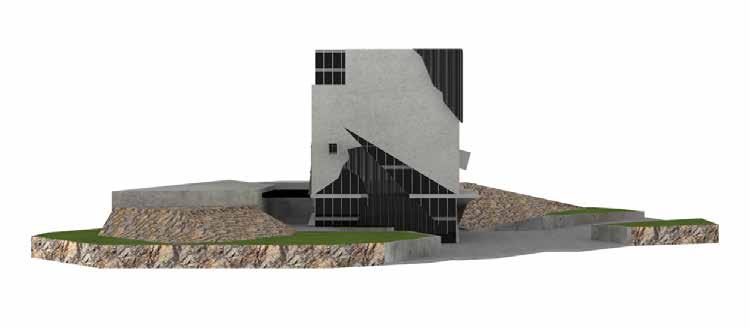 This project is a hybrid chunk that mostly allowed us to learn design informed by AI, which served as a guide for direction. This building is a hybrid between the Wyly Theatre and the Perot Museum. The Hybrid Chunk was designed to incorporate the organic aspect of Per-