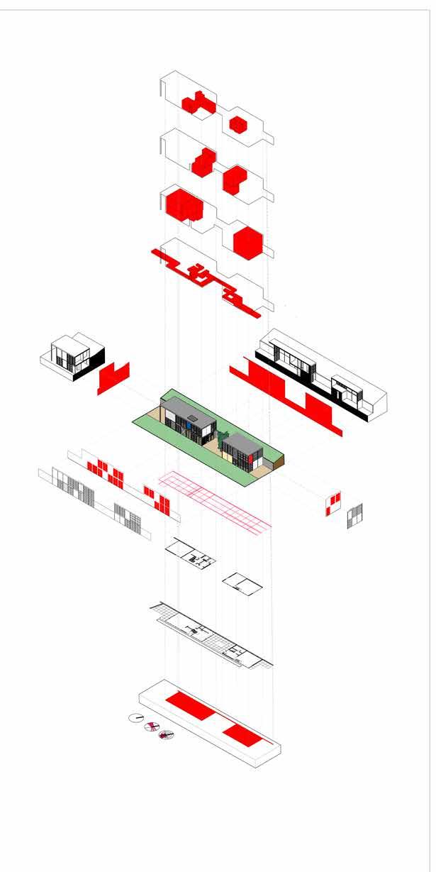 This project is a precedent study on Eames House No. 8, designed by Charles and Ray Eames. It was built in California near Los Angeles, more as a proof of concept inspired by the modular nature of Mies Van Der Rohe’s style. This representation was made by utilizing Revit for the diagrams, the model, and the massing which shows the surfaces, openings, and the circulation be-
