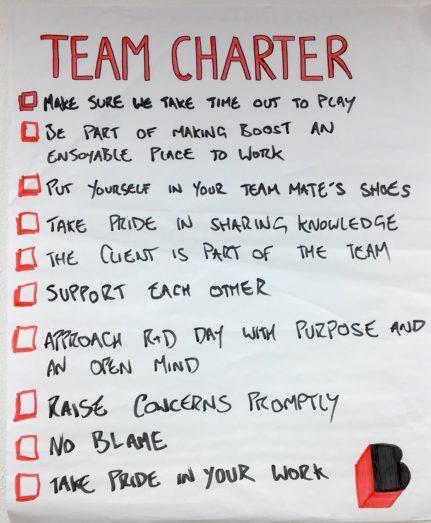 a) Establecimiento del equipo. Los estatutos del equipo, a veces denominados contratos sociales en entornos ágiles crean transparencia, impactan positivamente en la responsabilidad de los participantes y puede ayudar a los equipos "con problemas" a negociar asuntos difíciles. El contrato social es el conjunto de reglas que acuerda el equipo que van más allá de sus roles básicos de proyecto y mandato de responsabilidades. Las preguntas que los equipos deben discutir pueden incluir: ¿Quiénes somos? ¿Cuál es el nombre de nuestro equipo? ¿Cuáles son nuestros valores? ¿Cómo manejaremos el conflicto? ¿Cómo ejecutaremos nuestras reuniones? ¿Cómo gestionaremos nuestro trabajo? ¿Cómo sabremos si tenemos éxito?¿Cómodefinimosdiversión?