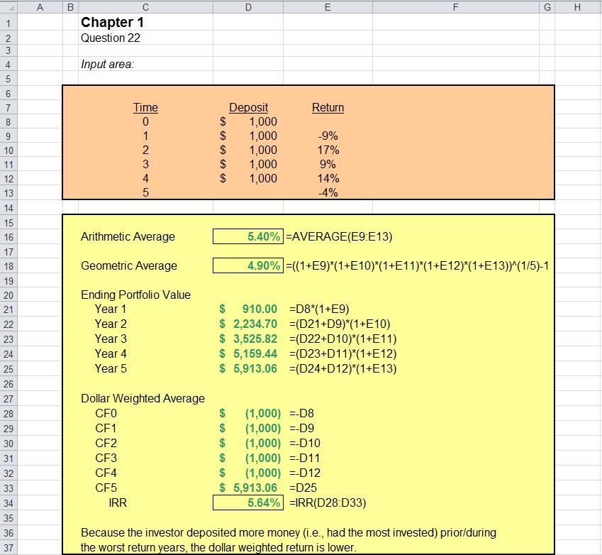 5. Cherry average return = (17% + 11% – 2% + 3% + 14%) / 5 = 8.60%