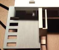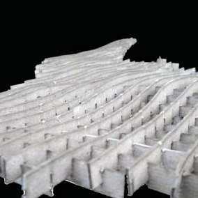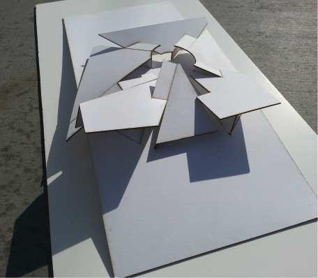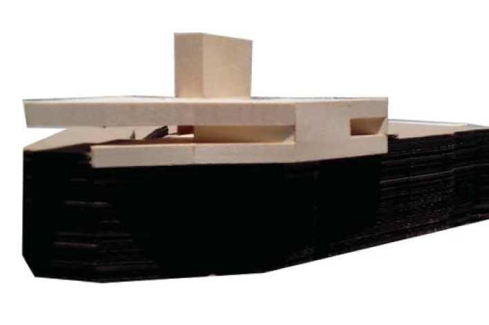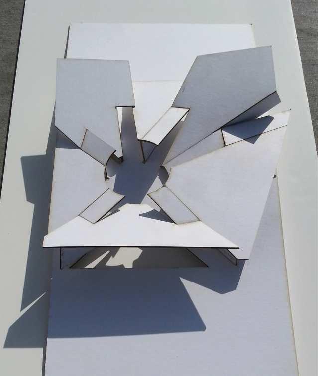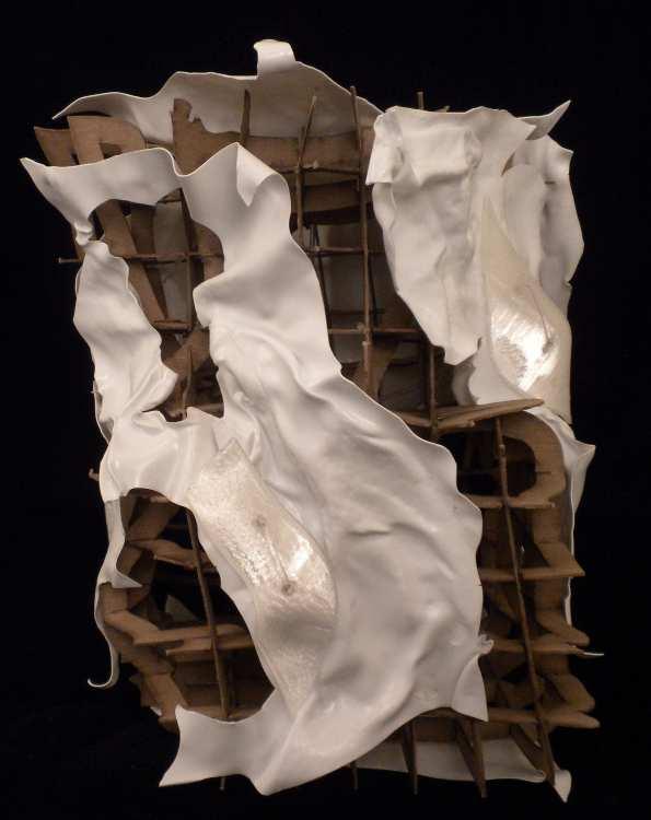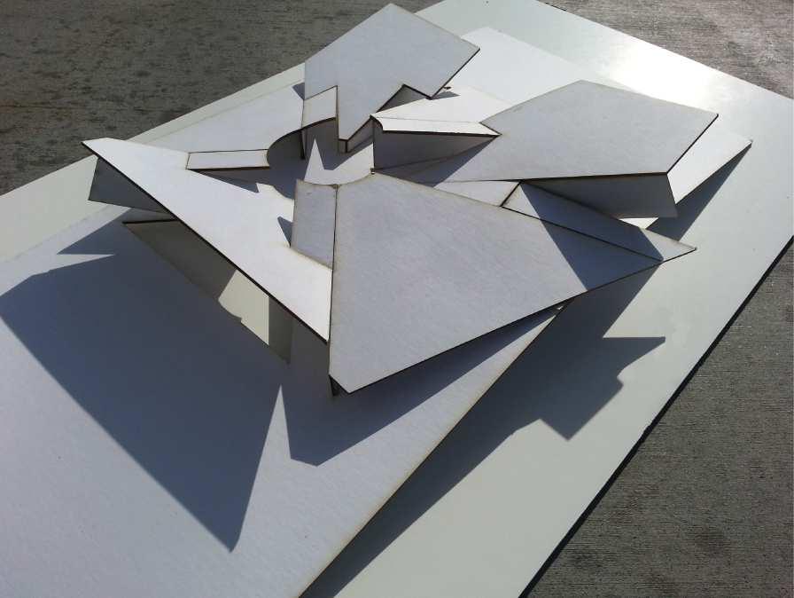 A tessellation inspired by M.C. Escher drawn in Adobe Illustrator, An installation model constructed of sheet metal and walnut, A “fillagree” abstraction constructed of laser cut chipboard, heat formed styrene and 3d printed composites, A model of a city block in Amsterdam constructed of pine, maple, and cherry, An abstraction of Casa Horizonte by RCR Architects built of steel and glass, Form cast resin and plaster module.