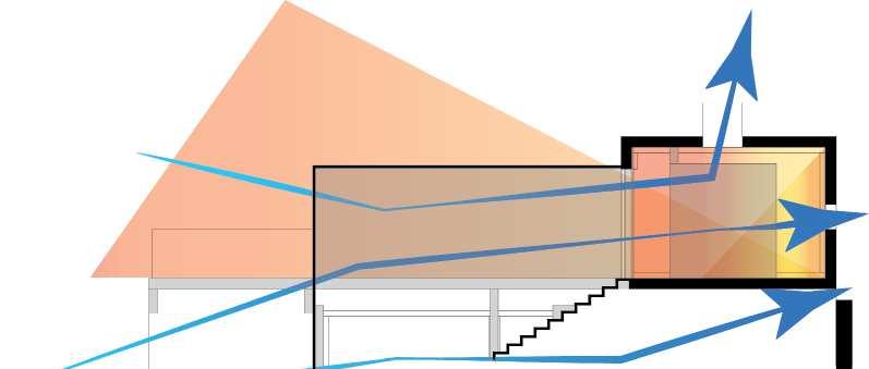 Details such as the wood skin of the staircase and construction of interior walls softens the textures overall and creates a contrast to become less overwhelming. The framed interior walls also permit a convenient tenant improvement process for repurposing in the future, without sacrificing the structural integrity. The large glass sliding walls allows for a large quantity of light to enter each space throughout the home. The interior walls that do not meet the ceiling and the ribbon fenestrations allow for a higher quality of light. Overhangs address the intensity of the sun throughout the different times of the day and year. Where necessary, artificial indirect lighting was organized to mimic the same feel.