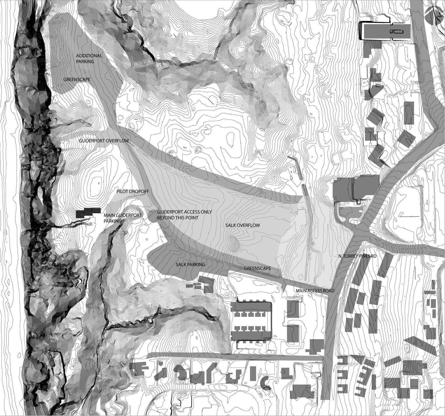 A morsel near the Torrey Pines State Reserve the owner experiences an unnerving temporary allowance from one month to the next. By creating a romantic connection between the existing landscape and the architecture which houses this program, one could hope that some permanence may be accepted by the state.