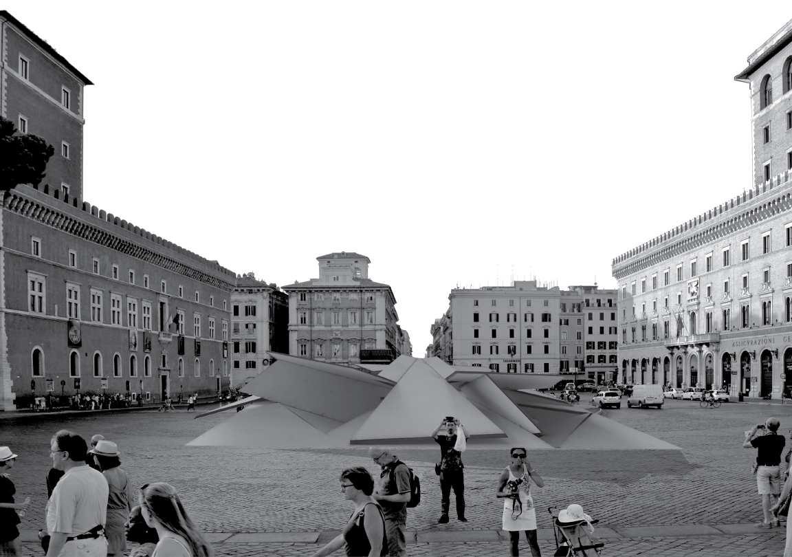 Acting as a portal to the present day heart of Rome, the Metro Station invests itself in Piazza Venezia essentially acting as a link to Piazza Del Popolo, the Colosseo, and the Tiber River. Negotiating with the existing, projecting engagement to the public, and absorbing different layers through the horizontal and vertical manifests a deviation from the consistent. Responsively reacting angulating forms reveal apparent similarities yet subtle differences.