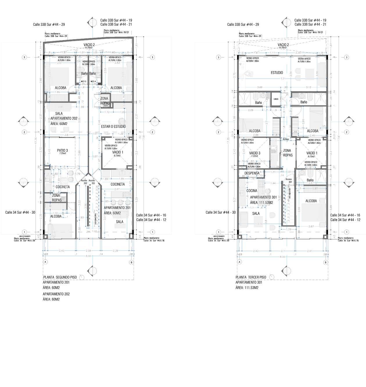 IMG 1: Planimetrías con modificaciones leves, según los requisitos del cliente, y la implementación de mobiliario acorde a los planos y a la comodidad funcional de las tres residencias.