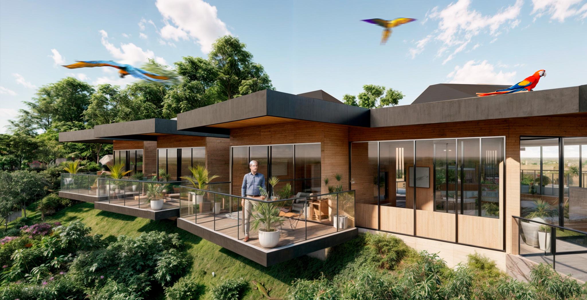 Se crearon una serie de renders que muestran el proyecto en su contexto realista. Estos renders incluyen los materiales específicos del diseño y simulan las condiciones atmosféricas precisas, proporcionando una representación detallada y auténtica del proyecto. De esta manera, se logra una visualización clara y comprensible para el cliente, lo que facilita la apreciación de los acabados, la integración con el entorno y la atmósfera general del diseño.