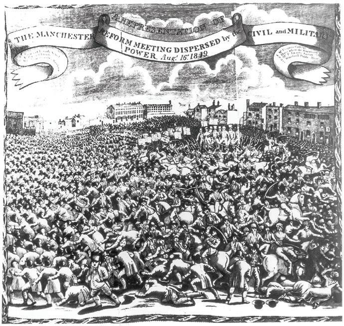 Artist’s impression of the ‘so-named’ Peterloo Massacre in Manchester’s St Peter’s Field 1819