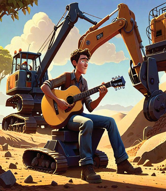 The next day, Jonni brought his electric guitar and played as loud as he could to scare the diggers away.
