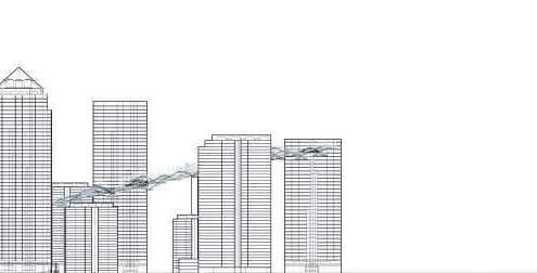 Inspired by the behaviour and patterns of the ripples in the water of the River Lea, the masterplan starts to take shape with the positioning of the residential units, the communal sky bridge studios and the workshop spaces on the ground floor of the buildings. Buildings closer to the waterfront will be lower in height to allow for the apartments further back to have sweeping views of the river and greenery. Four jetties along the waterfront serve as entrypoints for construction materials to be transported to site using barges, and soon after transformed into passanger piers to connect the community.