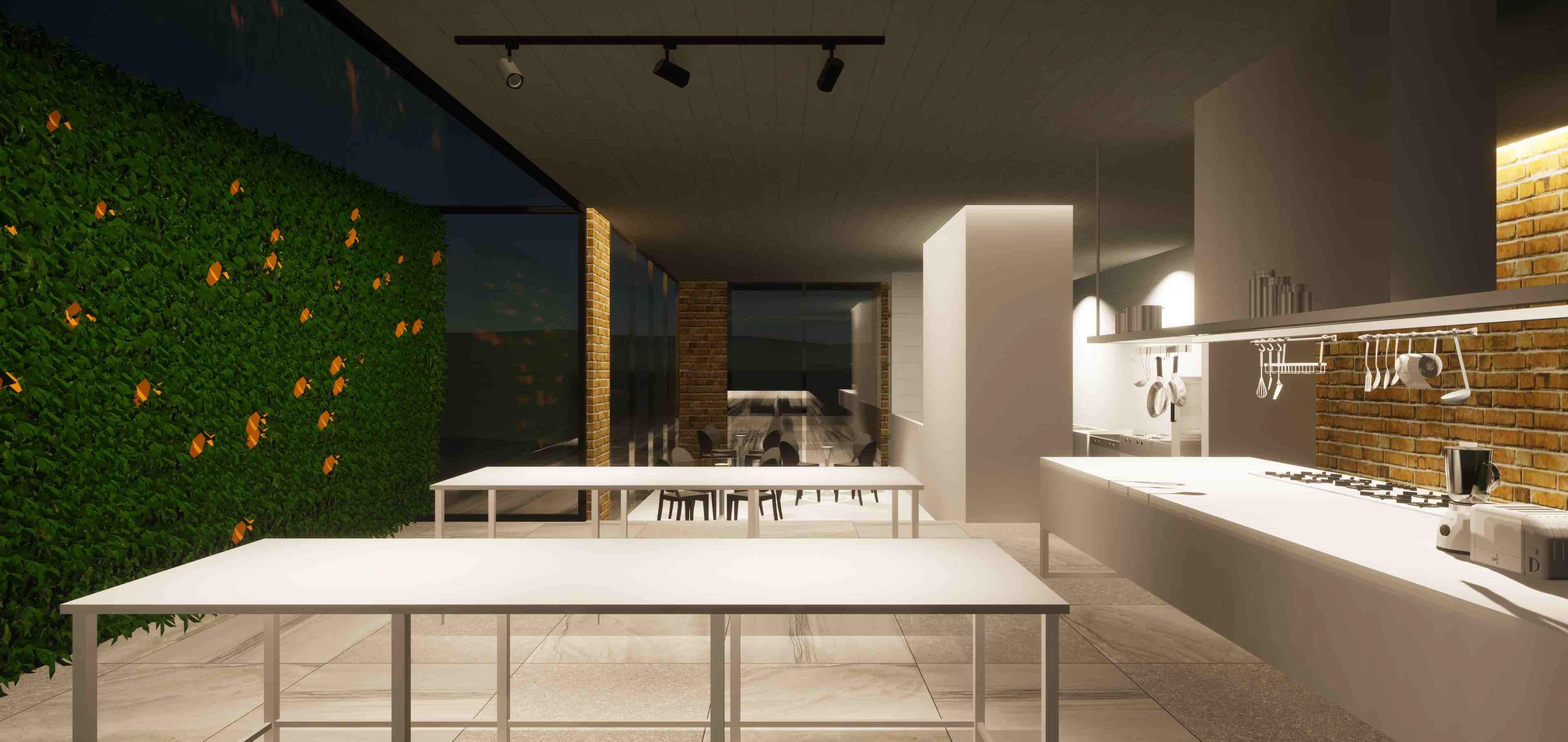 Split between public and private spaces, the central courtyard acts as a natural barrier that physically divides the public bakery from the private living spaces but creates necesary outdoor space while preserving the visual connectivity between the different zones and creating an open plan spacious atmosphere.