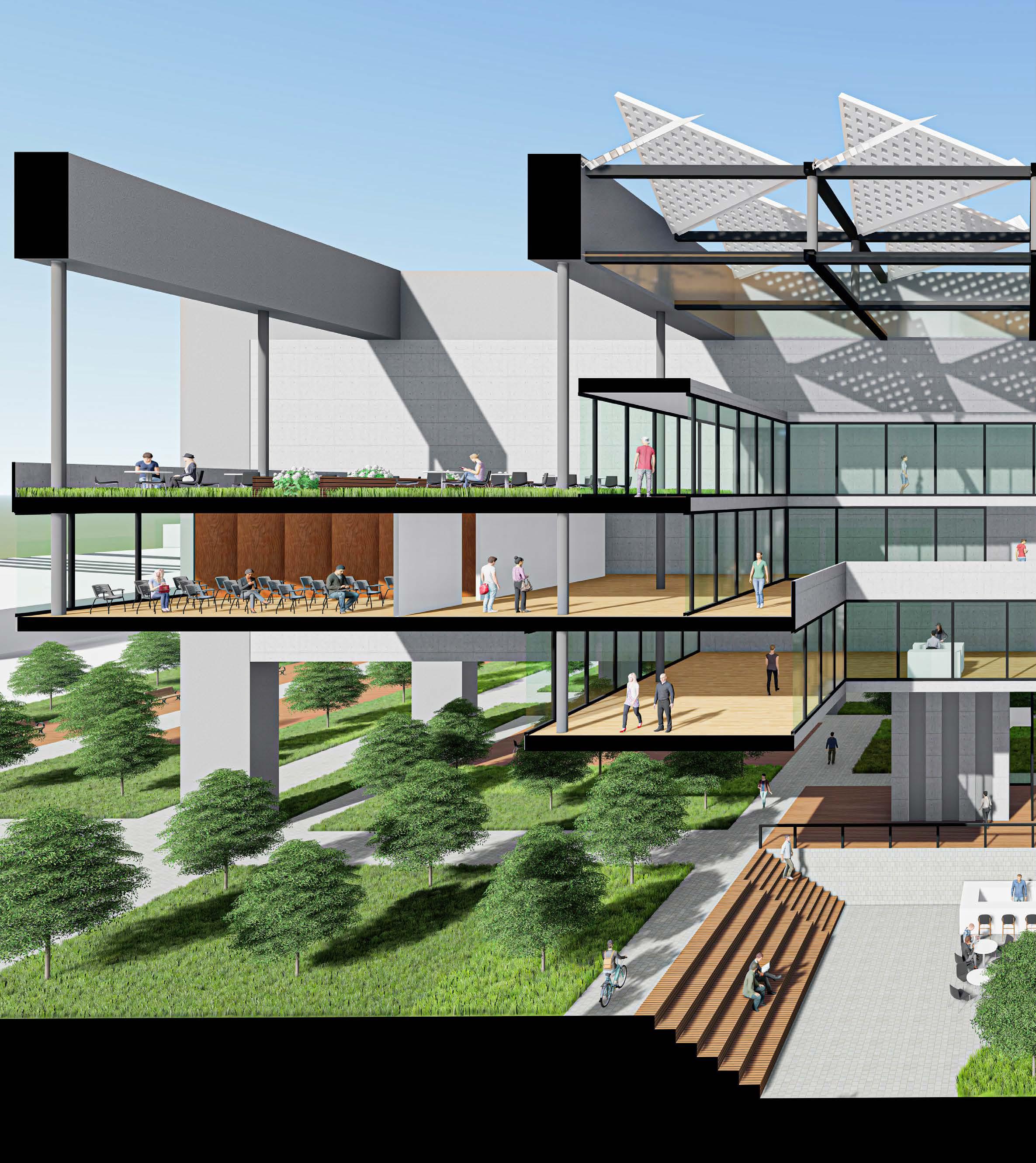 La propuesta para el concurso para la nueva Bauhaus organizado por Arkitekturo pretende generar un vínculo entre la vida cotidiana y la vida universitaria, para que juntos se forme un todo, es decir un solo elemento, de esta manera se pretende generar un nuevo entendimiento de la arquitectura haciendo que esta se adapte a los cambios y cumpla las nuevas necesidades de los estudiantes, no solo educativas sino en la forma de vida. La malla tartán que es un tejido que consiste en una serie líneas horizontales y verticales que al momento de entrelazarse forman cuadrados que guían la malla, partiendo de esta idea se tomó cada componente del programa para guiar el patrón, generando en su convergencia los espacios principales (talleres, exhibiciones y viviendas) así la unión de los espacios genera una figura pura, a su vez la malla tartán se puede evidenciar formalmente en su estructura.