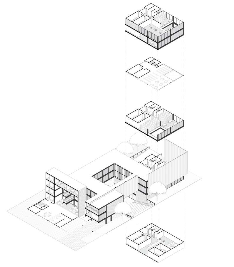Vivienda, Talleres, Terraza, Biblioteca y Exhibiciones