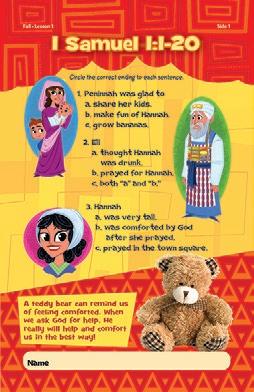 Read 1 Samuel 2:1-2. When Hannah brought Samuel to live with Eli, she prayed this. What does she delight in? Think of answers God has made to your prayers—and thank Him! Fall • Lesson 1