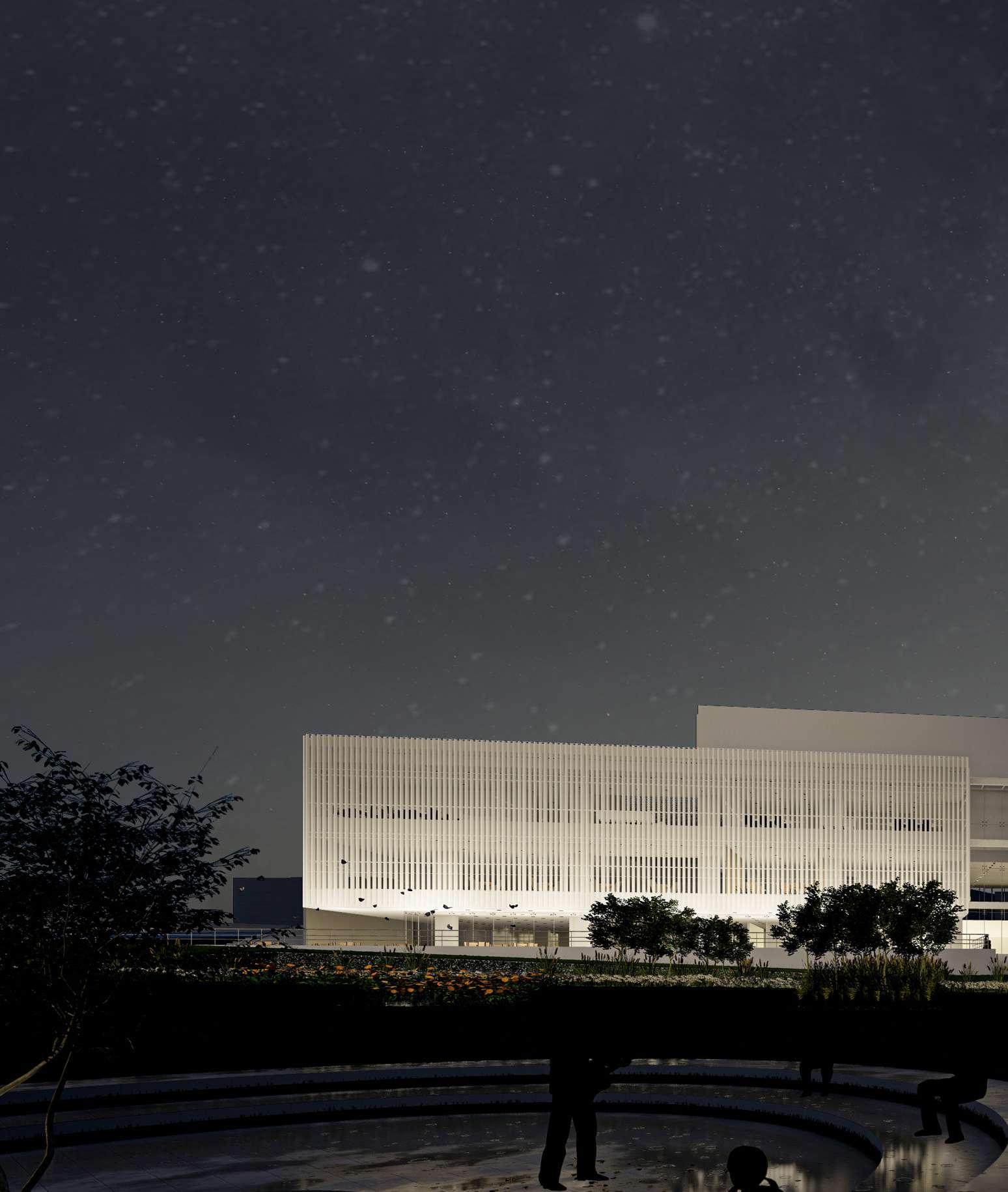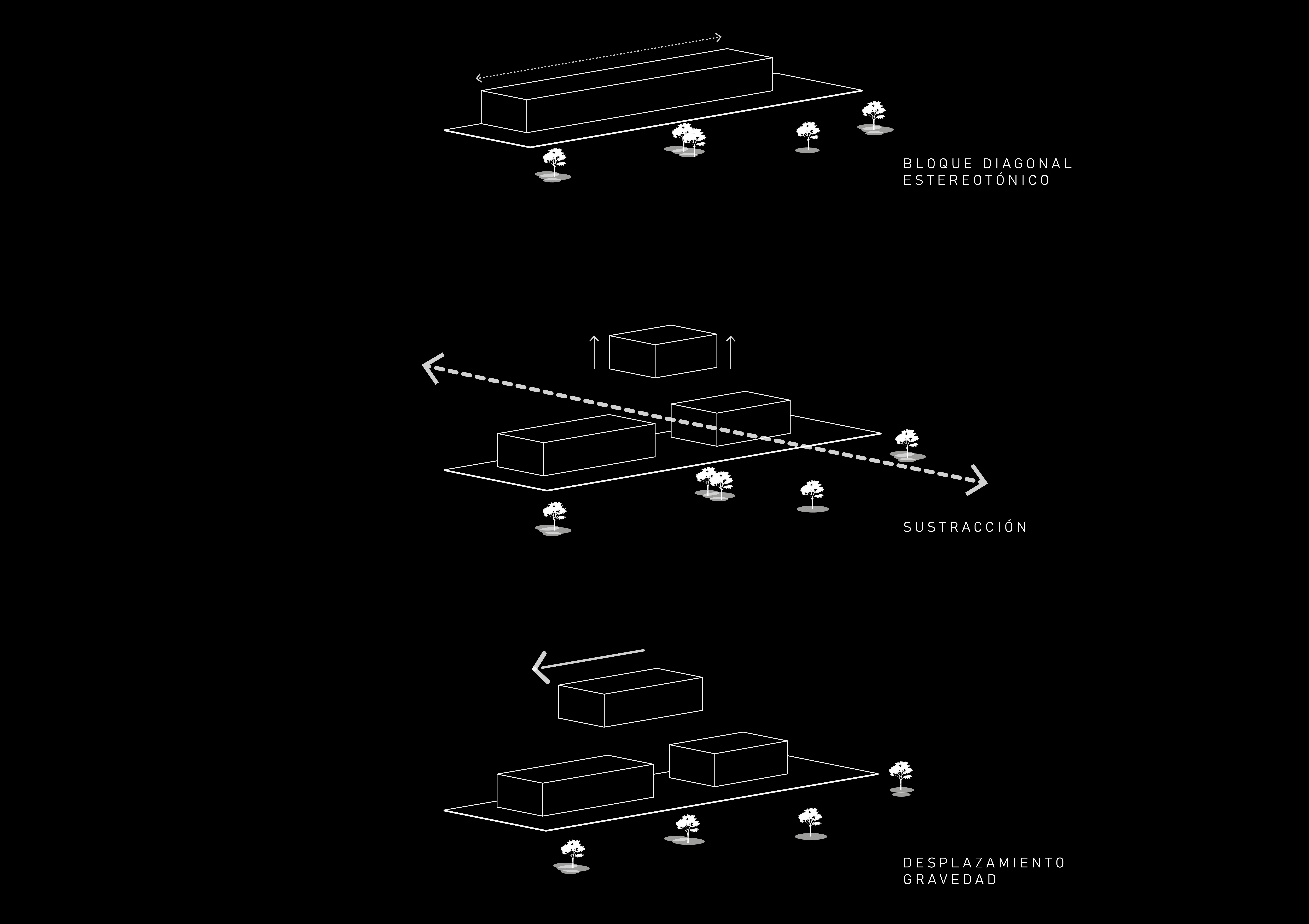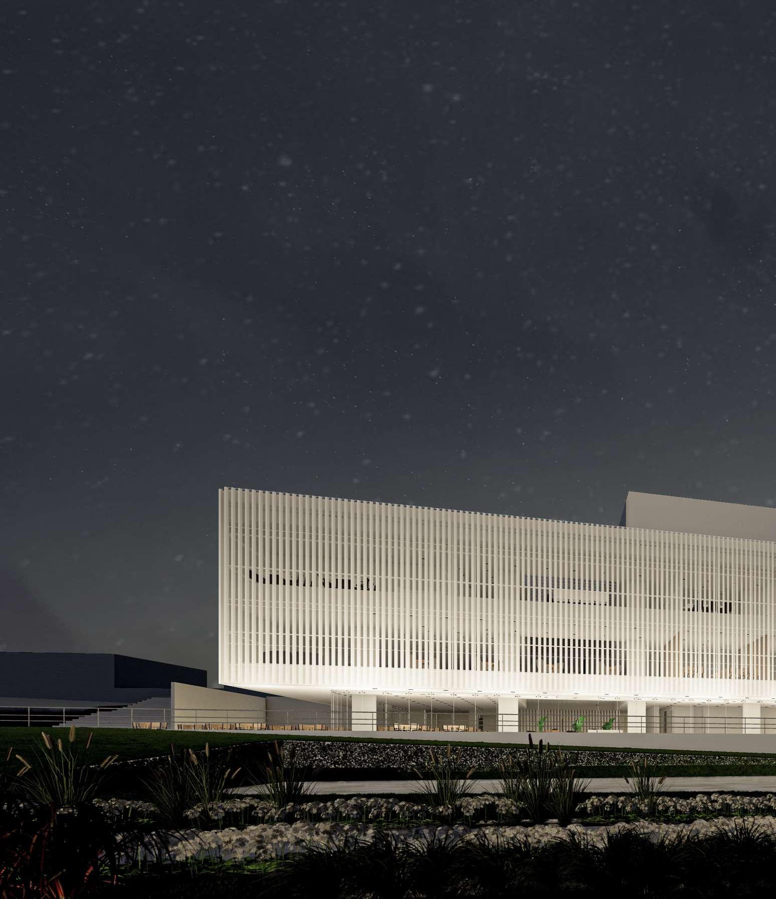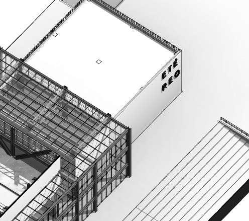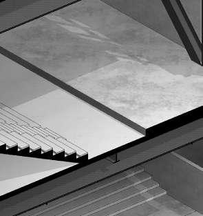 E téreo es una composición estereotómica de volúmenes dispuestos a diferentes alturas, relacionados por un concepto de vacío unificador, el cual se convierte en el éther del objeto arquitectónico, el origen. La dicotomía estructural del hormigón y el metal se debe a un proceso de adapatación el edificio a varias funciónes.