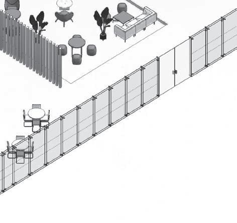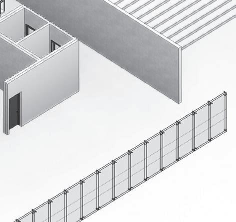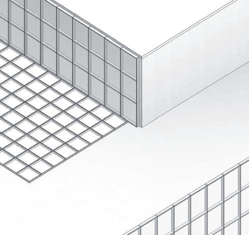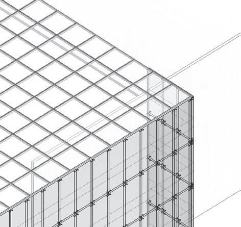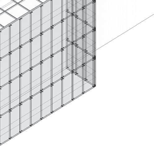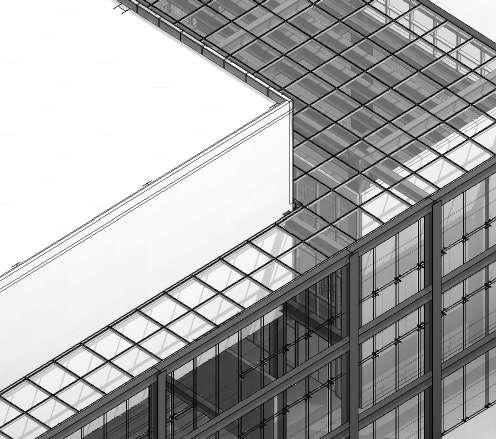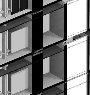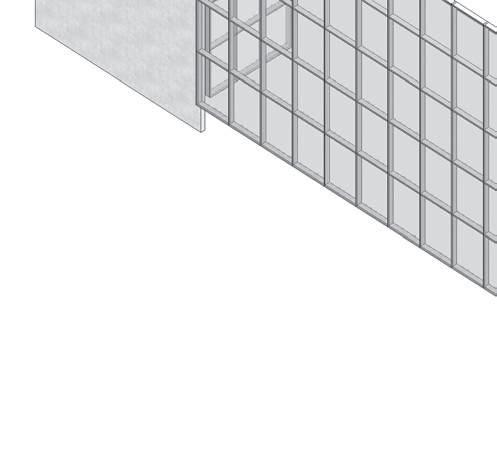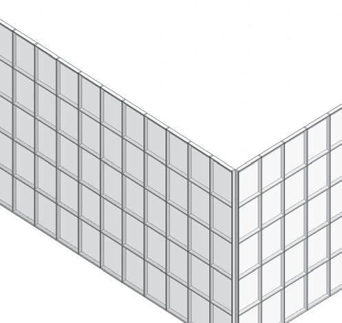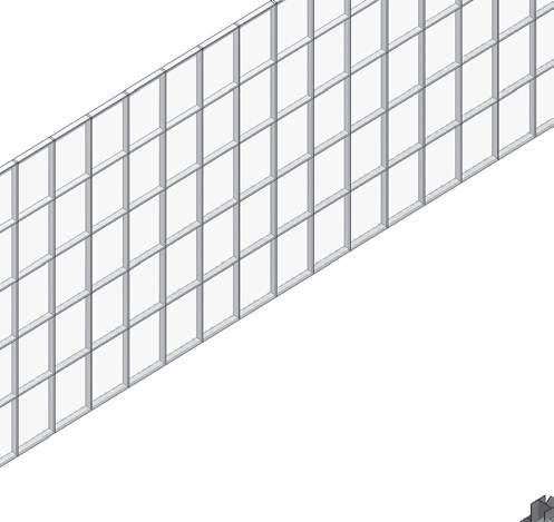 SISTEMA DE MURO CORTINA panel acristalado 6mm montantes rectangulares de aluminio 0.15x0.10m retícula 1.20x2.4m