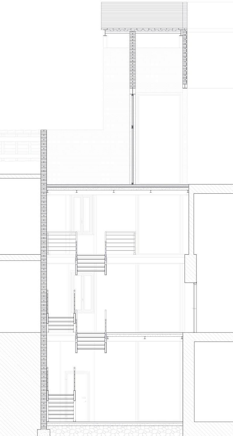 The volumes have evolved to meet both the size and performance requirements of the law and to achieve a satisfactory architectural result that dialogues with the existing building.