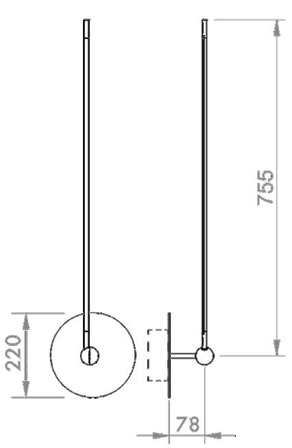 Leuchtende Stiele 617mm lang, 360° drehbar, ohne Stopps.