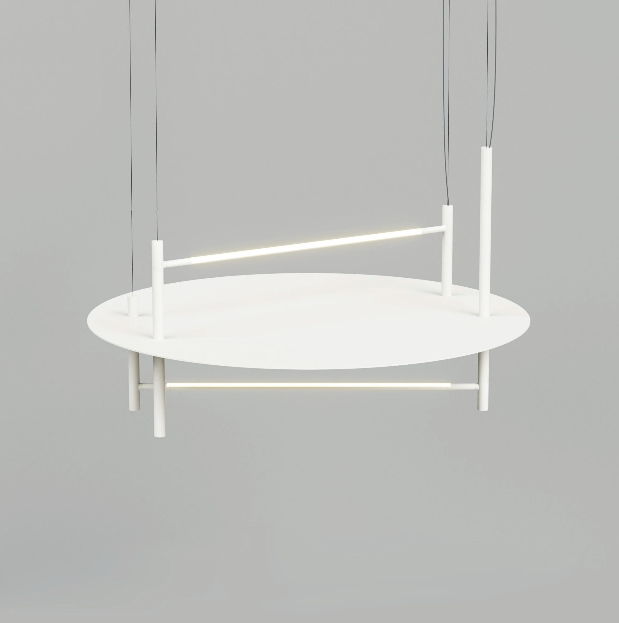Die Hängeleuchte Oì•Circle spielt mit Geometrien und dem Raum. Die Philosophie Hu.li bleibt auch bei dieser neuen Hängeleuchte der rote Faden. Zwei leuchtenden Stiele Durchmesser 1 cm, dimmbar und frei verstellbar. Die zentrale Metallscheibe ermöglicht eine direkte, indirekte oder kombinierte Lichtnutzung.
