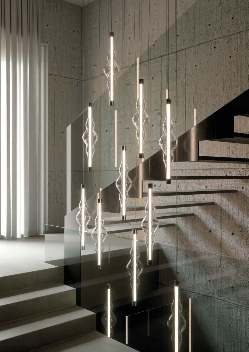 WE OFFER A WIDE SELECTION OF COLLECTIONS, WITH DIFFERENT INSTALLATION OPTIONS, AND MULTIPLE CUSTOMISATION POSSIBILITIES. THANKS TO OUR WIDE RANGE OF GLASS COLOURS AND VARIOUS METAL SURFACE FINISH OPTIONS, EACH PRODUCT CAN BE ADAPTED TO SPECIFIC NEEDS. IN ADDITION, WE SUPPORT OUR CUSTOMERS IN DEVELOPING SOLUTIONS, BOTH SIMPLE AND COMPLEX, THROUGH 3D DRAWINGS AND CUSTOM VISUALISATIONS, TAILORED TO THE DESIGN AND LIGHTING NEEDS OF THE SPACE (MORE DETAILS FROM PAGE 300) .
