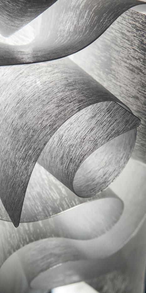 To celebrate the 10 year anniversary of Slamp’s collaboration with Hadid Design Studio, Zaha’s iconic 2013 Aria takes on new form in a modular version. The illuminated modular system sinuously undulates throughout space with diverse polycarbonate layers that in the lamp’s highest points, reach two meters of visionary fluidity. The lamp’s ever-evolving points of view are the fruit of careful research focused on how Lentiflex® enhances and liquifies illumination. Available in both total white and gold finishes: the elements are metallized through a process where an aluminum bar is vaporized in a hyperbaric chamber. The Slamp Team can customize solutions to any space, working alongside designers.