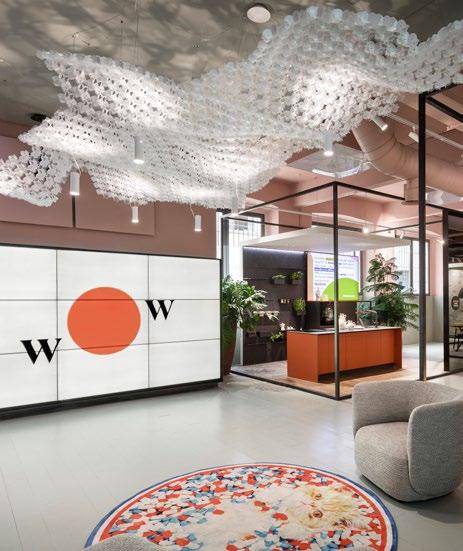 The wall anchoring system, thanks to the use of “spacers,” offers designers complete freedom in creating decorative Nuvem surfaces. By fixing the modules at different distances from the wall, it’s possible to play with the depth and movement of the composition.