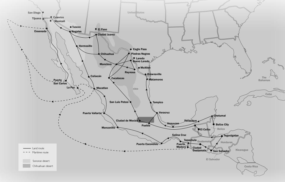 Image Map of the Vestiges of Grief: an Impetus of Hope proposed route in Mexico.