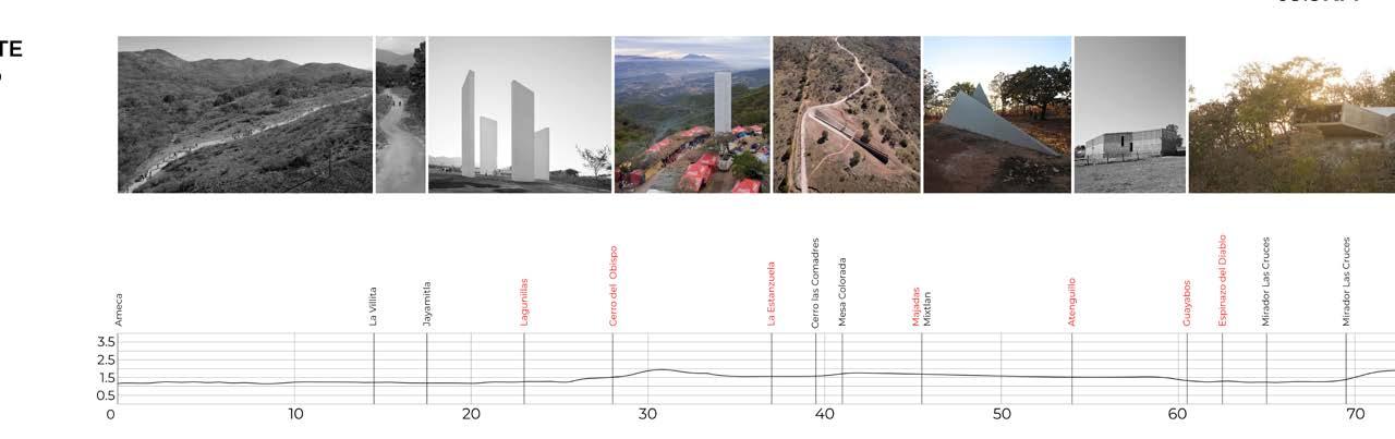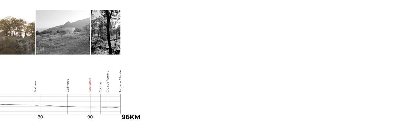 The study of the Pilgrim Route in Jalisco, Mexico aided in the comprehension of how architecture enriches an established route by addressing the experience and necessities of the users. The constructs strategically scattered throughout the trail are accompanied by service areas that prioritize the issues of: water, waste, shade, restrooms and way-finding. 10 Thes smaller scale structures managed to not only enhance the challenging trek from the town of Ameca to the town of Talpa de Allende, but also the living conditions of the local communities along the way.