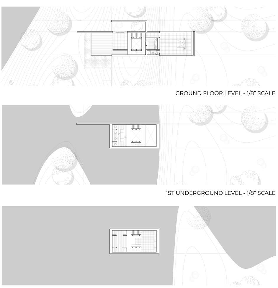 Set of architectural plans showcasing the spaces in relationship to the site context.