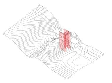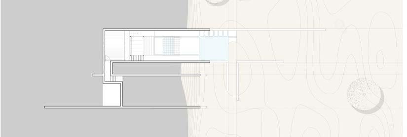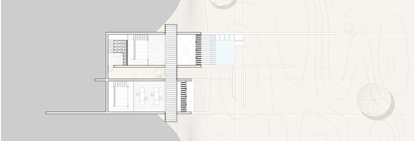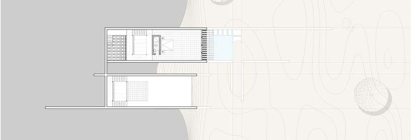 Architectural plan, illustrating the set of spaces generated as a result of the heavyweight series of planes rooted within the cliff.