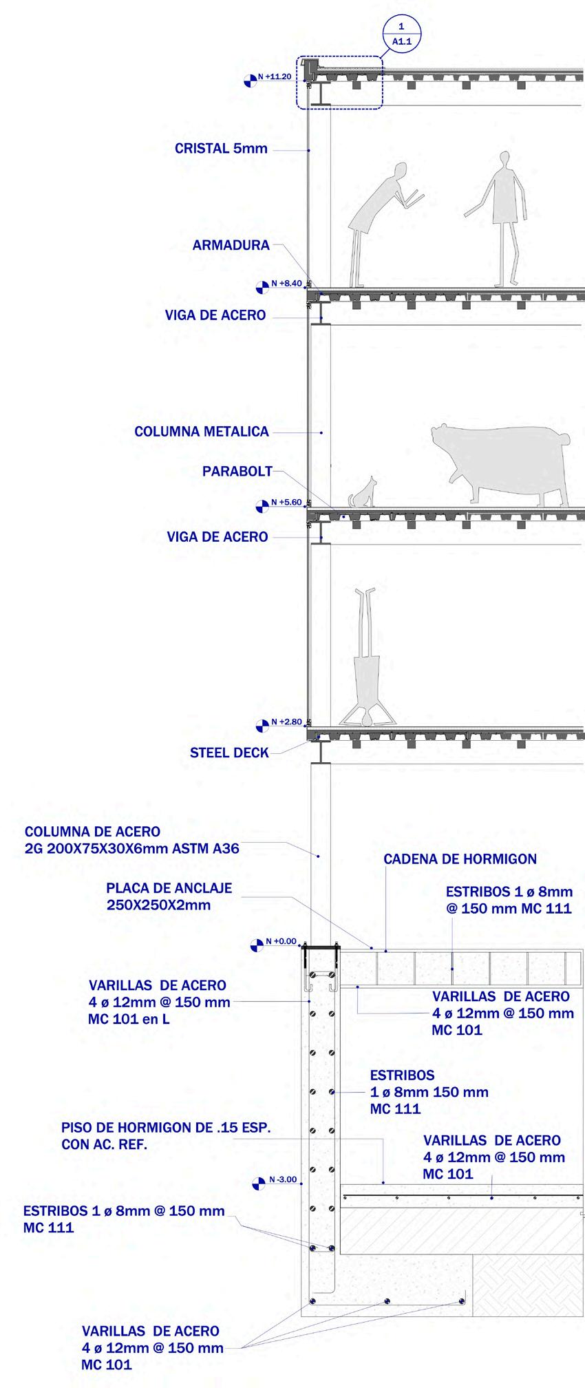 Aqui se va desde lo micro a lo macro como ya se observo en el tema anterior de muestra los tipos de estructura que se va a usar, en este caso mostramos los sectores donde se usara o donde es tos estaras presentes, los cimientos que seran de zapatas aisladas debido a la zona en la que se encuentra, también la losa livianda de steel deck bajando el peso de la esctrutura y permitiendo grandes luces y por ultimo la manposteria de arcilla cocida y en ciertos casos que se usa vidiro