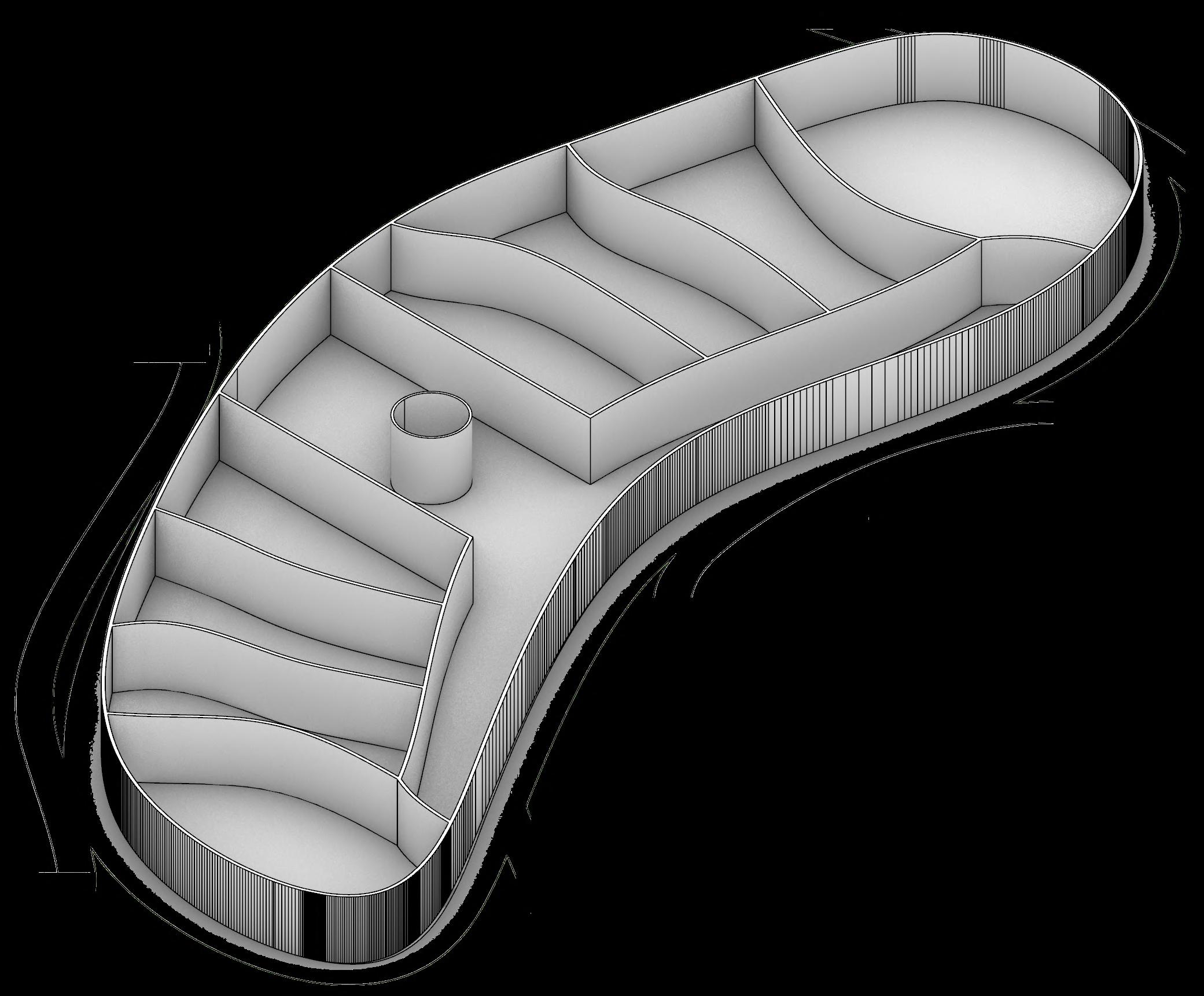 Existe una amlia zona fluiza que sirve como caminos para recorrer el proyecto en todas direcciones sintiendote libre de escoger tu destino. El publico es el principal autor buscando sensaciones que son diferentes dependiendo del lugar al que vas teniendo una experiencia única. La fluidez exteriore se vincula de manera directa con la interior permitiendo al usuario seguir con la idea de que todo es circulable.