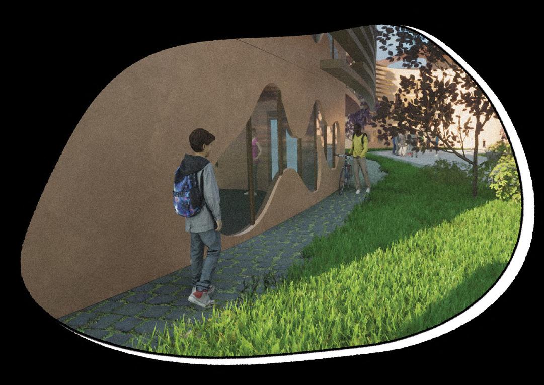 Esta idea se complementa con la anterior, para solucionar y lograr este objetivo se creo espacios den tro del equipamiento que fomenten las actividades exteriores de esta forma se logra crear espacios donde los usuarios se sientan comodos de realizar sus activiades y que a su vez también permita a estos mismas personas descanzar en un espacio seguro incluos la parte academica ya que gracias al mobiliario se puede revibir clases al exterior dando más confort a los estudiantes y profesores, junto a ello se creo estos espacios de encuentro para interaccion y cohesión social.