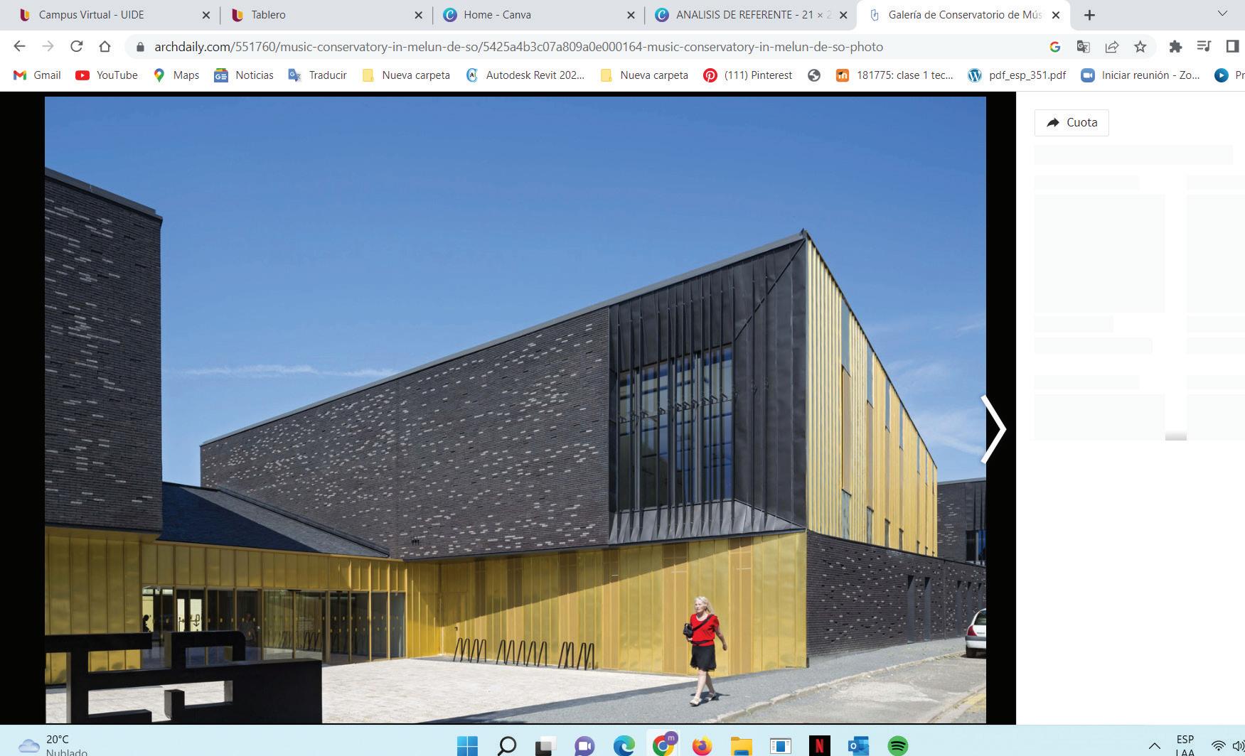 El conservatorio de Música es un proyecto que busca la fluidez interior y exterior, se encutra ubicado en un sector lateral de la ciudad perpendicular a dos calles principales de la ciudad.