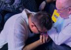 to repentance and for healing as if he was speaking God’s message of Love direct to them, standing when he said stand, repeating the prayer after him when he said pray.