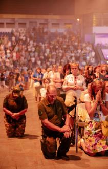 22 июня более 8000 человек собрались во Дворце Спорта у Києві на 7-й Национальный День Молитвы, проводимый по инициативе Дэвида. Возглавляемый епископами 20 христианских конфессий, военными капелланами, представителями правительства. Обычные люди заполнили зал… И даже во время проведения молитвы в любой момент отключение электричества из-за ракетных атак могло остановить служение… Слава Богу, такого не случилось. Дэвид сказал: «Вы здесь молитесь, чтобы Бог изменил курс войны сегодня и дал вам полную Победу – Богу да будет Слава! НЕТ НИЧЕГО СЛИШКОМ СЛОЖНОГО ДЛЯ БОГА. Этот День Молитвы, никто не смог бы его провести в таких обстоятельствах. Но мы здесь, потому что у Бога есть план для України, чтобы использовать вашу страну для Его Славы. Україно, ты