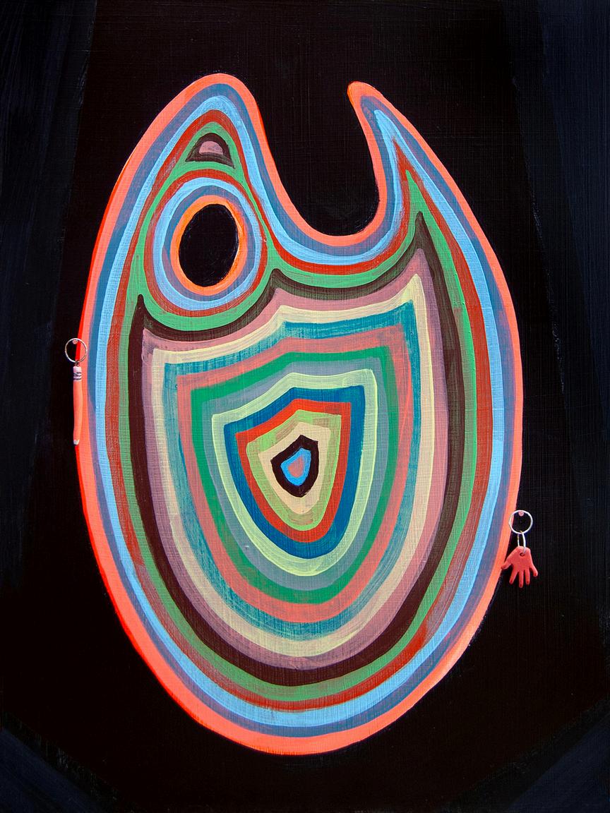 19) Jordan Buschur, The She, 2026 acry ic on panel with porcela n charm 16 x 12 in