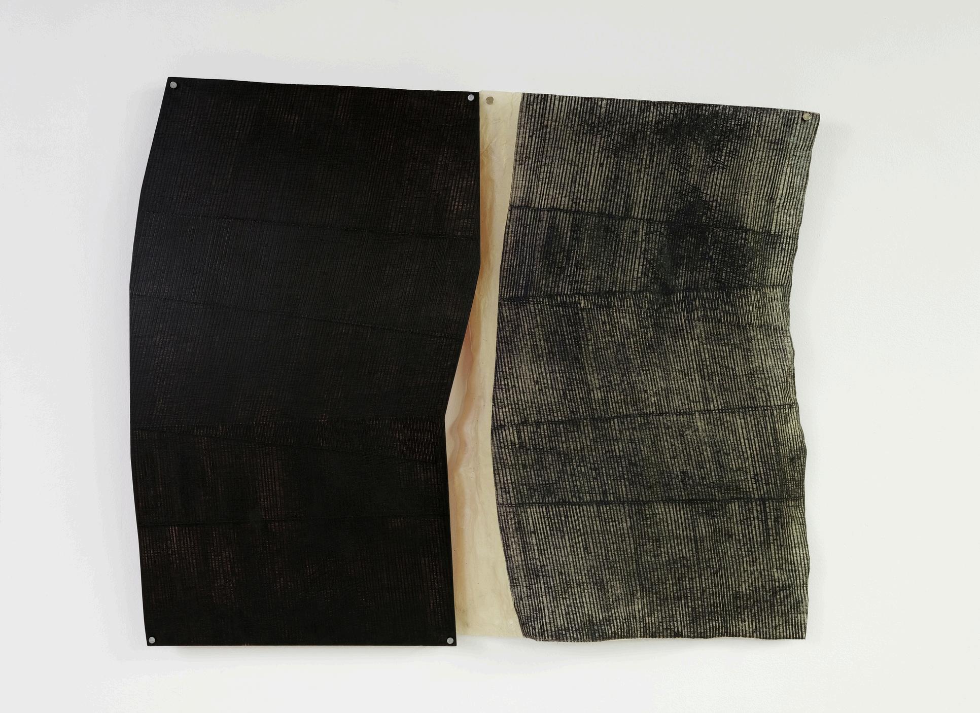11) Em ly Gherard, Pr mord al Truth 2025 Plywood Collograph P ate inked w th Oi Paint w th Nai s and Col agraph Print on K takata Paper coated w th Rabbit Skin G ue 24 x 27 x 1 in