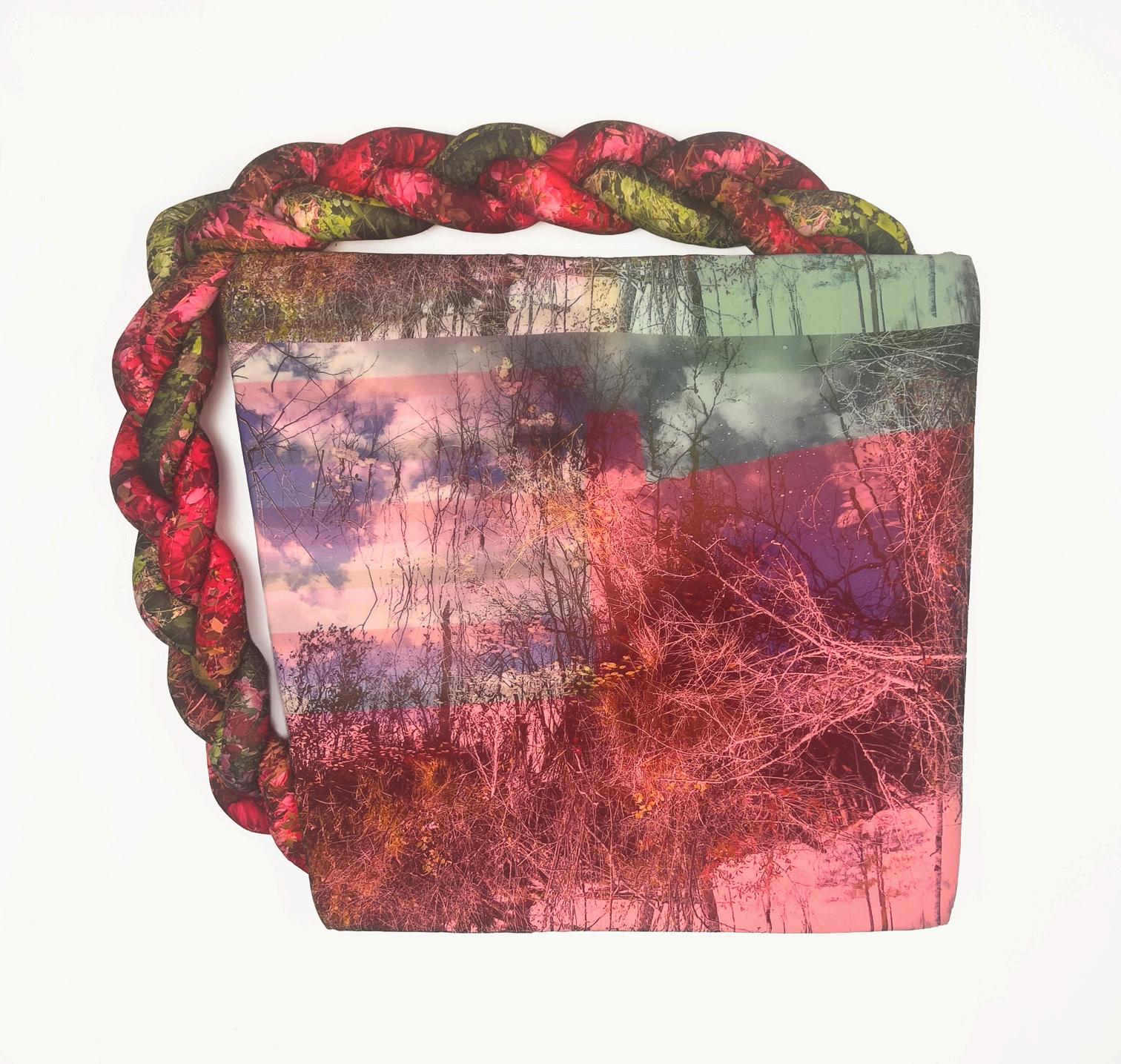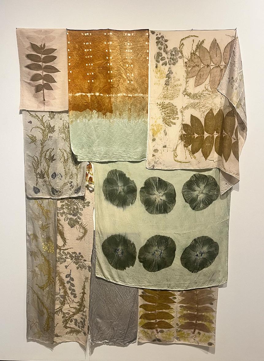 30) V rgina Griswald, Imprint, p ant-based dyes on si k and l nen, 84” x 60”, assembled/ insta led on s te 2026