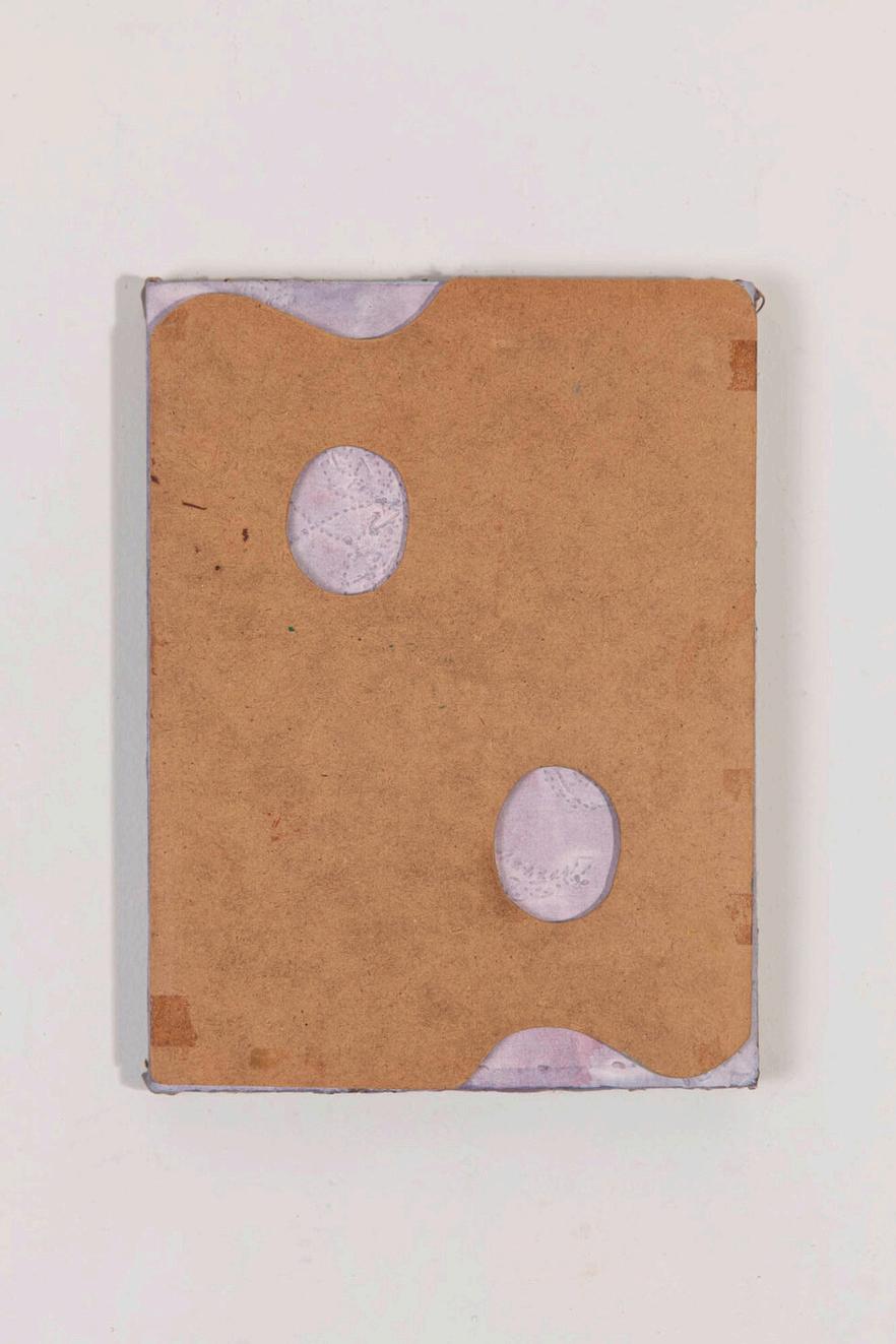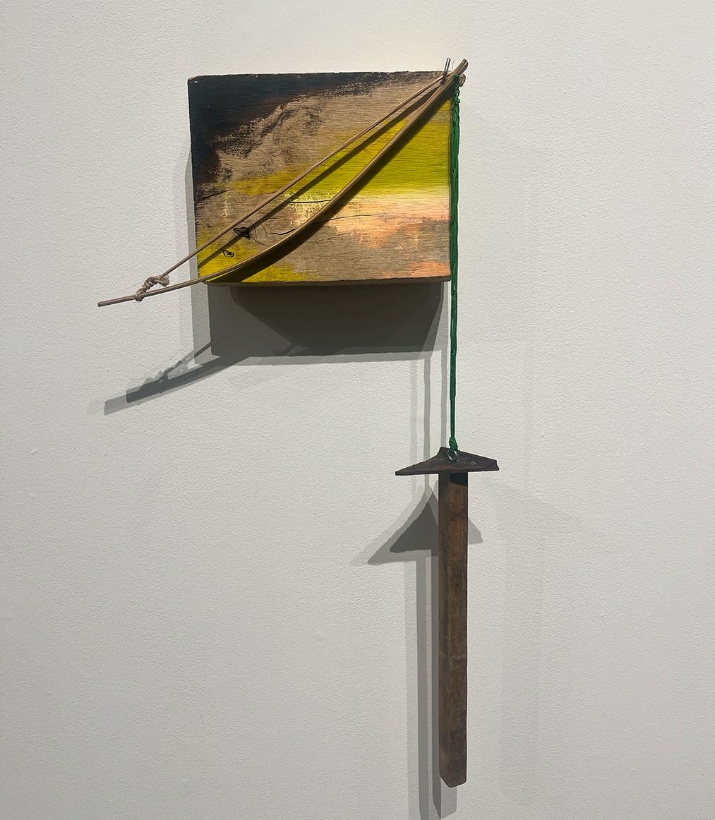 4) Conrad Guevara, Unt tled Swing Set, 2025 acyr ic gouache and coconut water on wood, 14x 5 x3 in