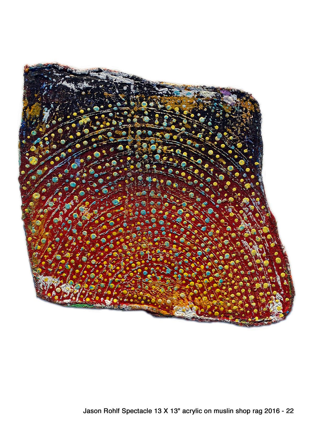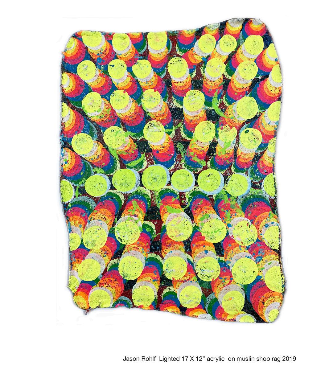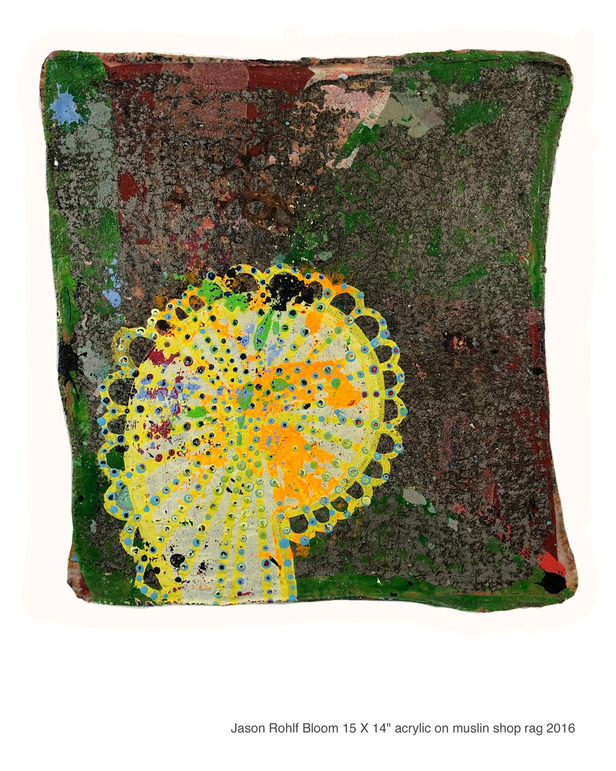 14 & 15) Jason Rohl , Perches Bloom, L ghted Spectac e, 2016-2022, acry ic on musl n shop rag 15x14 in